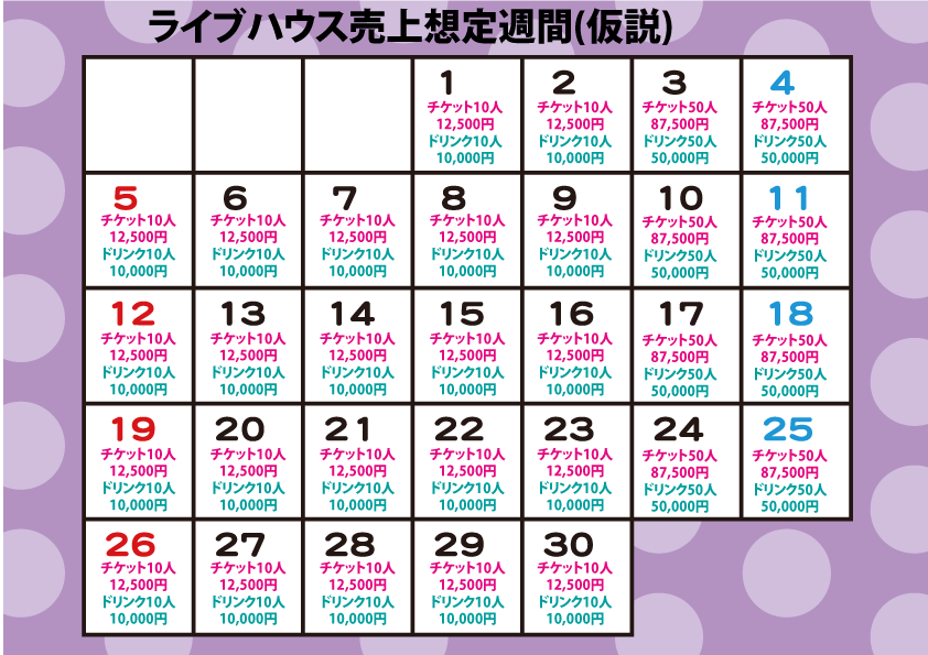 土・金が8日×50人×チケット3,500円=1,400,000円